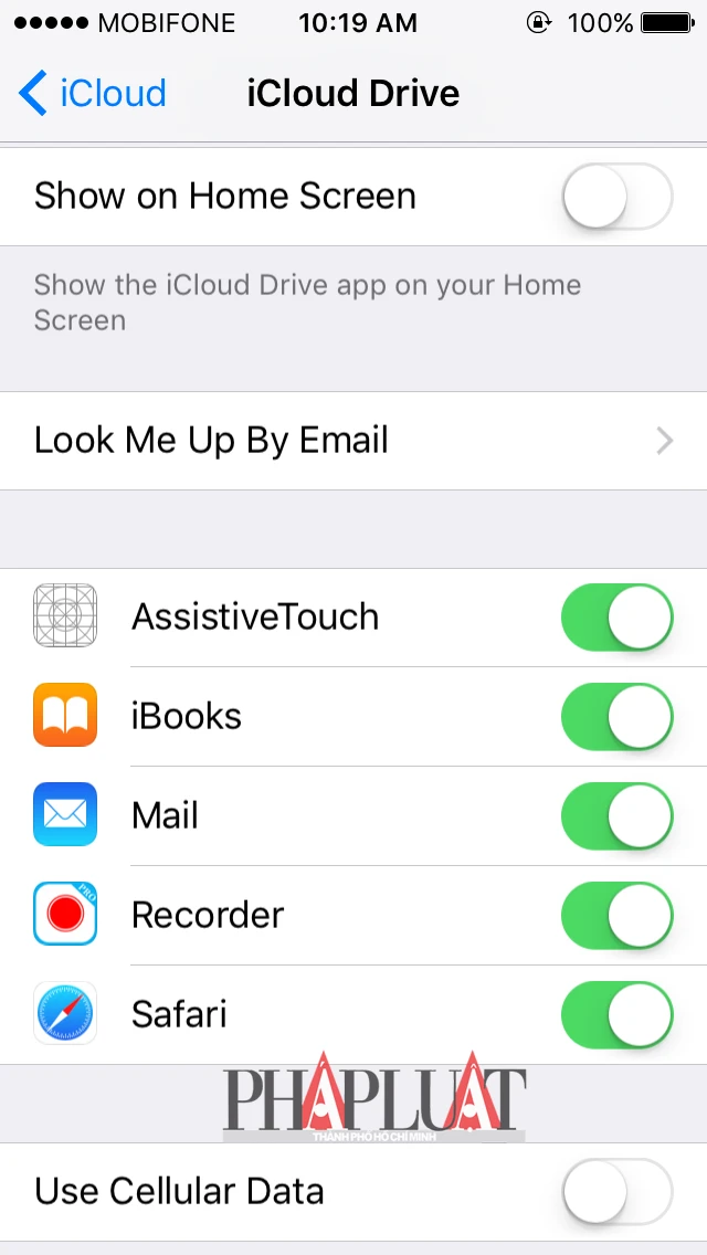 Tắt tính năng sử dụng dữ liệu di động trên iCloud. Ảnh: M.HOÀNG
