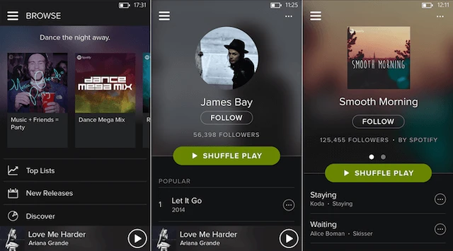 Spotify là ứng dụng giải trí bạn không thể bỏ qua. Với giao diện đơn giản, ứng dụng cho phép người dùng truy cập vào thư viện với hàng triệu bài hát miễn phí. Bên cạnh đó, bạn còn có thể tự tạo list nhạc riêng bằng cách kéo thả, đồng thời dễ dàng chia sẻ chúng trên Facebook, Twitter hay chính Spotify.
