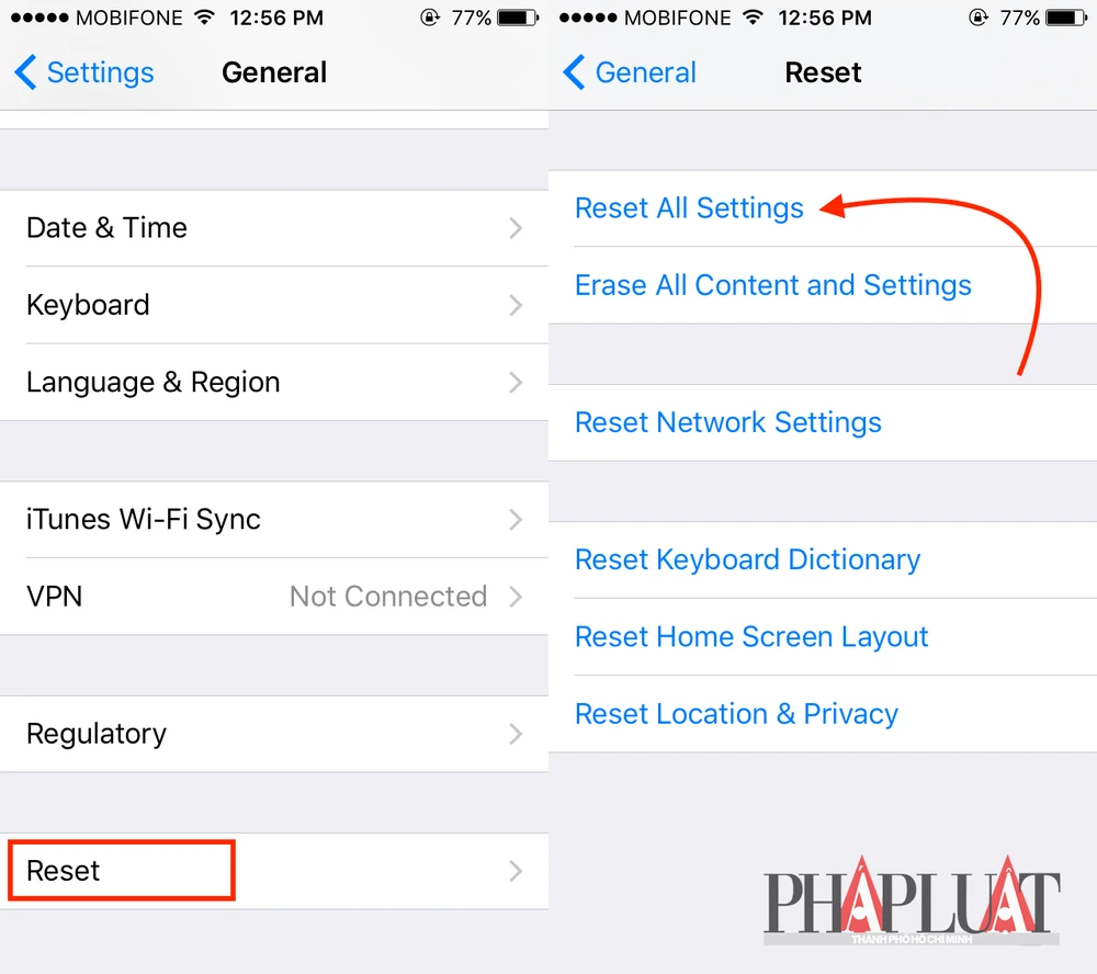 Ngoài ra, vẫn còn một số giải pháp khác mà bạn có thể tham khảo như cập nhật iOS, hoặc thiết lập lại tất cả mọi thứ bằng cách vào Settings > General > Reset > Reset > Reset All Settings.