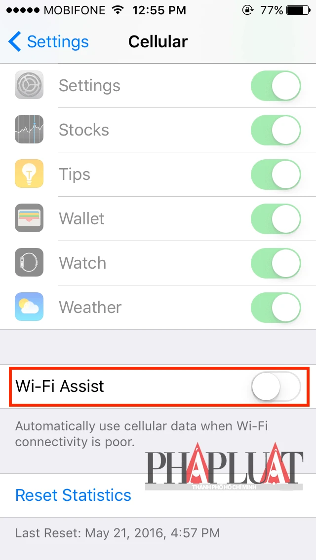 Để vô hiệu hóa, bạn hãy vào Settings > Cellular, cuộn xuống bên dưới và tắt tùy chọn Wi-Fi Assist.