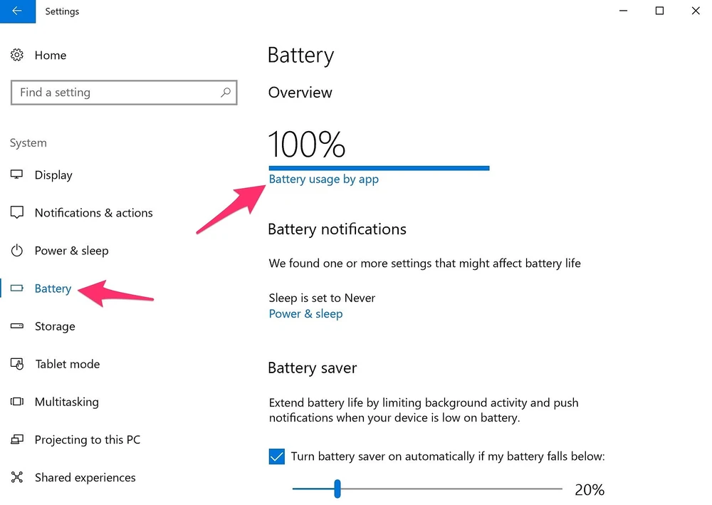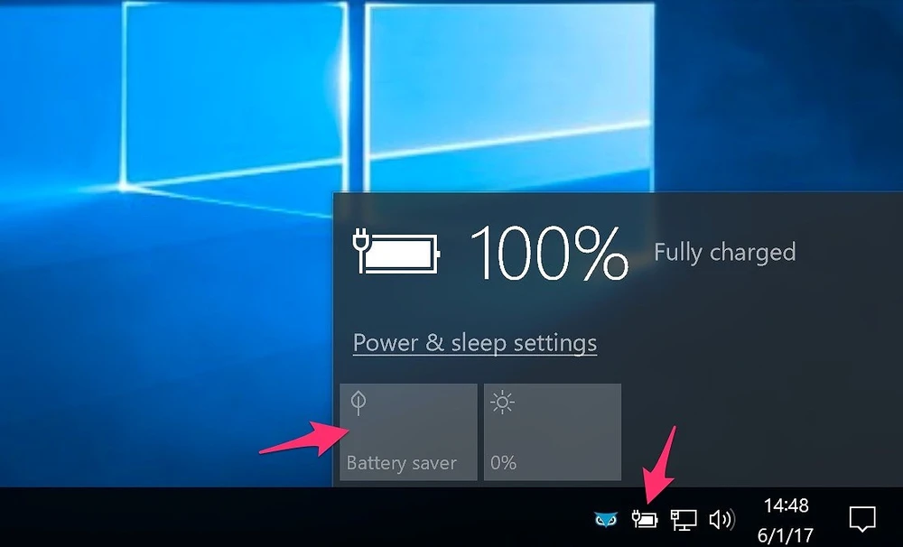 Windows 10 được Microsoft tích hợp sẵn tính năng Battery Saver, giúp tiết kiệm pin chỉ với một cú nhấp chuột. Để kích hoạt, bạn chỉ cần bấm vào menu Start > Settings > System > Battery > Battery saver hoặc nhấp vào biểu tượng viên pin ở góc phải bên dưới màn hình.