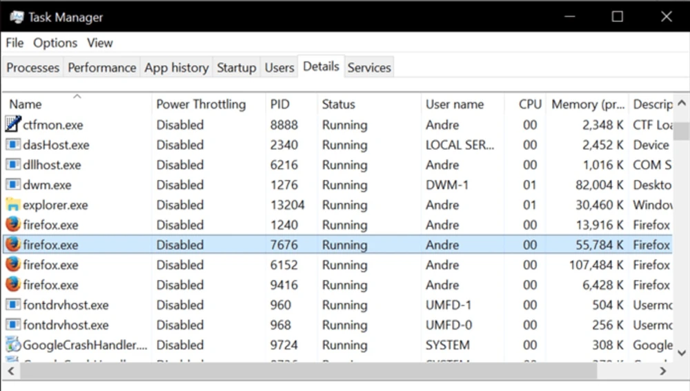 Quay trở lại Task Manager, lúc này bạn sẽ thấy xuất hiện thêm cột Power Throttling.
