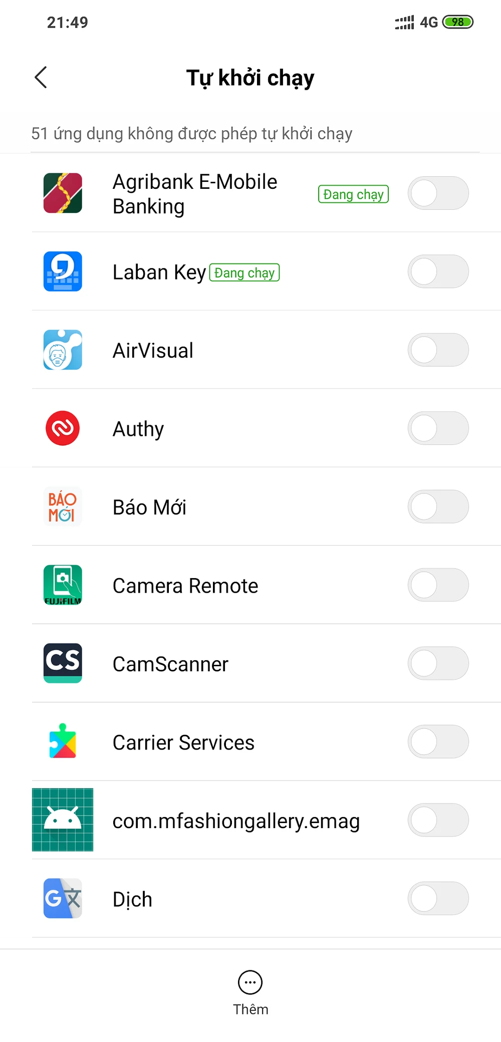 Khi có quá nhiều ứng dụng chạy nền, dung lượng RAM, CPU sẽ bị chiếm dụng và ảnh hưởng đến hiệu suất của điện thoại. Vì vậy hãy đảm bảo rằng bạn đã gỡ bỏ những ứng dụng không cần thiết hoặc vô hiệu hóa chúng trong phần Settings (cài đặt) > Permissions (quyền truy cập) > Autostart (tự khởi động). Lưu ý, tên và vị trí các tùy chọn có thể thay đổi tùy vào thiết bị bạn đang sử dụng.
