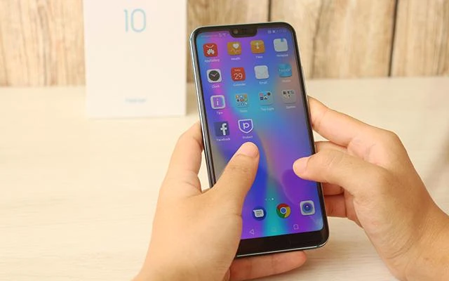 Honor 10 Phantom Greeen có màn hình tai thỏ, cảm biến vân tay được đặt chìm vào cạnh đáy của máy tạo cảm giác liền lạc.
