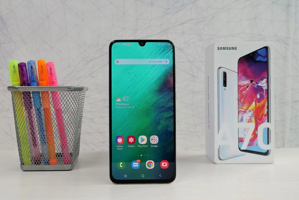 Trong khi đó, mẫu điện thoại Galaxy A70 cũng được giảm còn 6,9 triệu đồng, máy có màn hình vô cực Infinity-U 6,7 inch, công nghệ hình ảnh Super AMOLED, bộ vi xử lý Snapdragon 675, RAM 6 GB, 128 GB bộ nhớ trong cùng cảm biến vân tay trong màn hình.