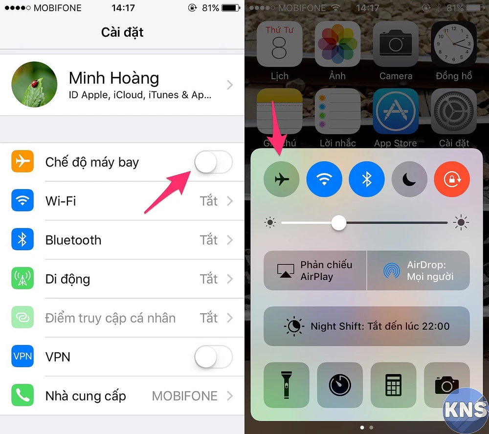Để thực hiện, bạn chỉ cần mở Control Center và bấm vào biểu tượng máy bay, hoặc truy cập vào Settings (cài đặt) > Airplane mode (chế độ máy bay).