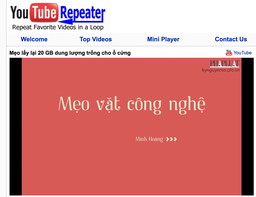 Nếu muốn phát lại một bài hát hoặc video bất kỳ, người dùng chỉ cần thêm từ khóa repeater vào sau chữ youtube trên thanh địa chỉ. Lúc này liên kết video sẽ có dạng https://www.youtuberepeater.com/watch?v=lK8_guOwmIE.