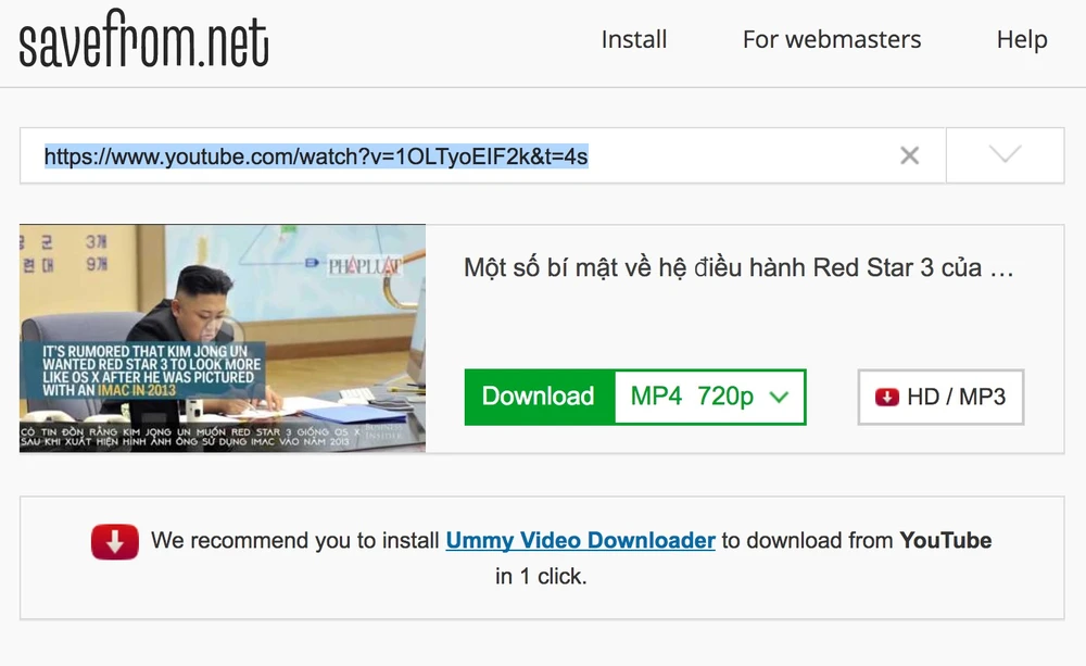 Nếu muốn tải về video để xem lại khi không có mạng (offline), bạn chỉ cần sao chép lại liên kết và truy cập vào địa chỉ http://en.savefrom.net/. Sau đó dán liên kết vào khung trống, lúc này bạn chỉ cần lựa chọn định dạng cần tải về và chờ một lát cho đến khi quá trình này hoàn tất.