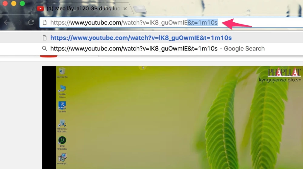 Thay vì phải xem phần giới thiệu ở đoạn đầu video, bạn có thể bỏ qua bằng cách lựa chọn mốc thời gian phát mặc định chỉ với vài thao tác đơn giản. Đầu tiên, bạn hãy sao chép lại liên kết (URL) của video cần chia sẻ, sau đó thêm vào phía sau địa chỉ dòng lệnh &t=AmBBs với A là số phút và B là số giây.