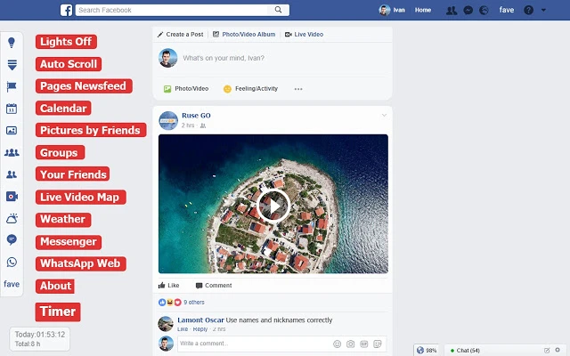 Về cơ bản, tiện ích sẽ cho phép người dùng ẩn nhanh sidebar (thanh bên trái), giúp loại bỏ các thành phần dư thừa và làm sạch News Feed (bảng tin). TDFB cũng sẽ hiển thị bộ đếm để người dùng biết được đã dành bao nhiêu thời gian cho Facebook.