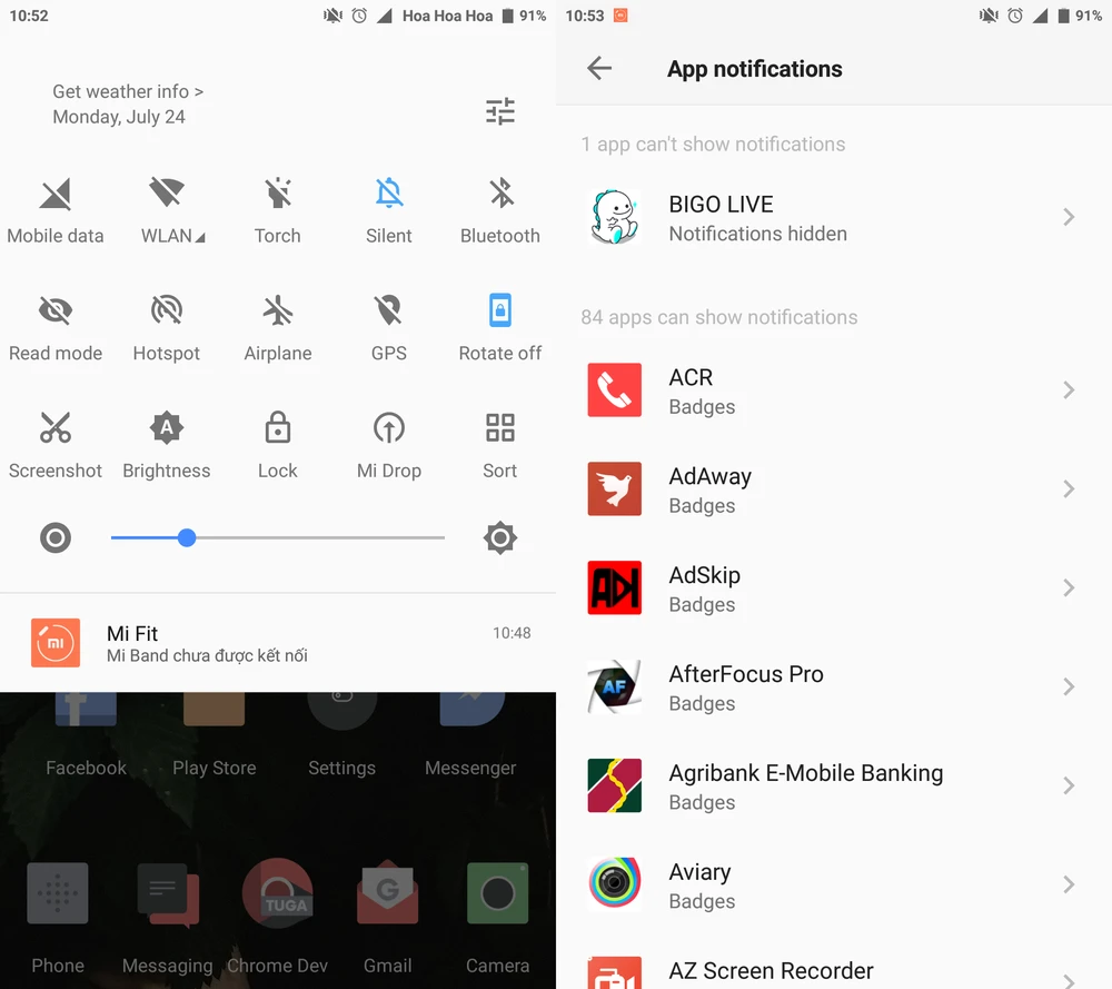 Trong khi đó, phần thông báo trên Android lại được thiết kế khá gọn, đồng thời cho phép bạn thiết lập các ứng dụng ưu tiên (hiển thị thông báo kể cả khi đang bật chế độ Do not disturb - đừng làm phiền), dễ dàng kiểm soát thông báo từ nhà phát triển ứng dụng.