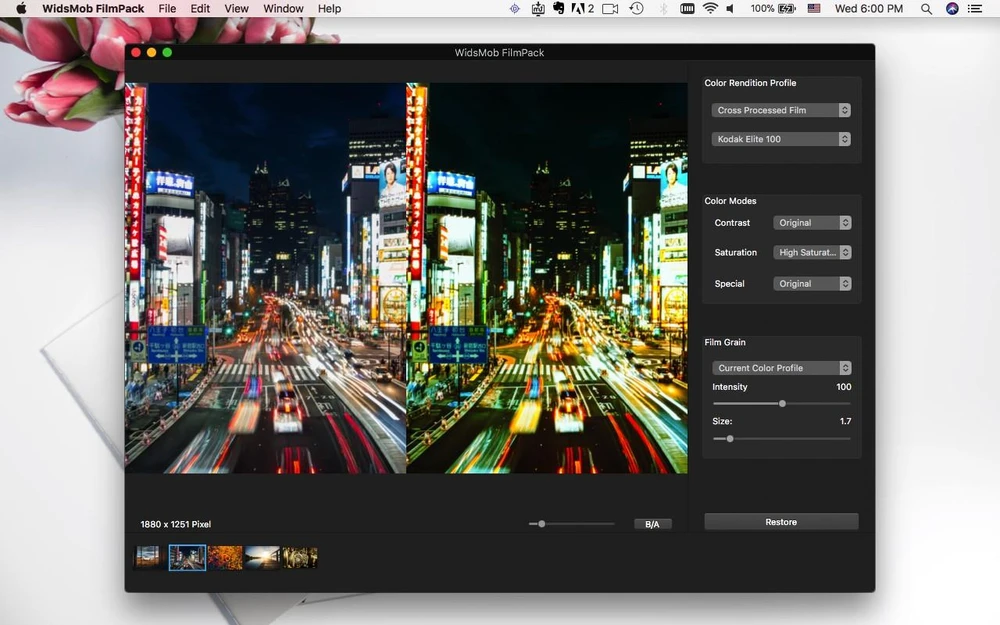 Với WidsMob FilmPack, bạn có thể biến bức ảnh trở nên bắt mắt hơn, dễ dàng tăng chỉnh cường độ, độ tương phản với 4 cấu hình hiển thị khác nhau, 28 chế độ thiết lập dựa trên các dòng máy ảnh kĩ thuật số, 15 tùy chọn tùy chỉnh màu sắc, 25 cấu hình phim...