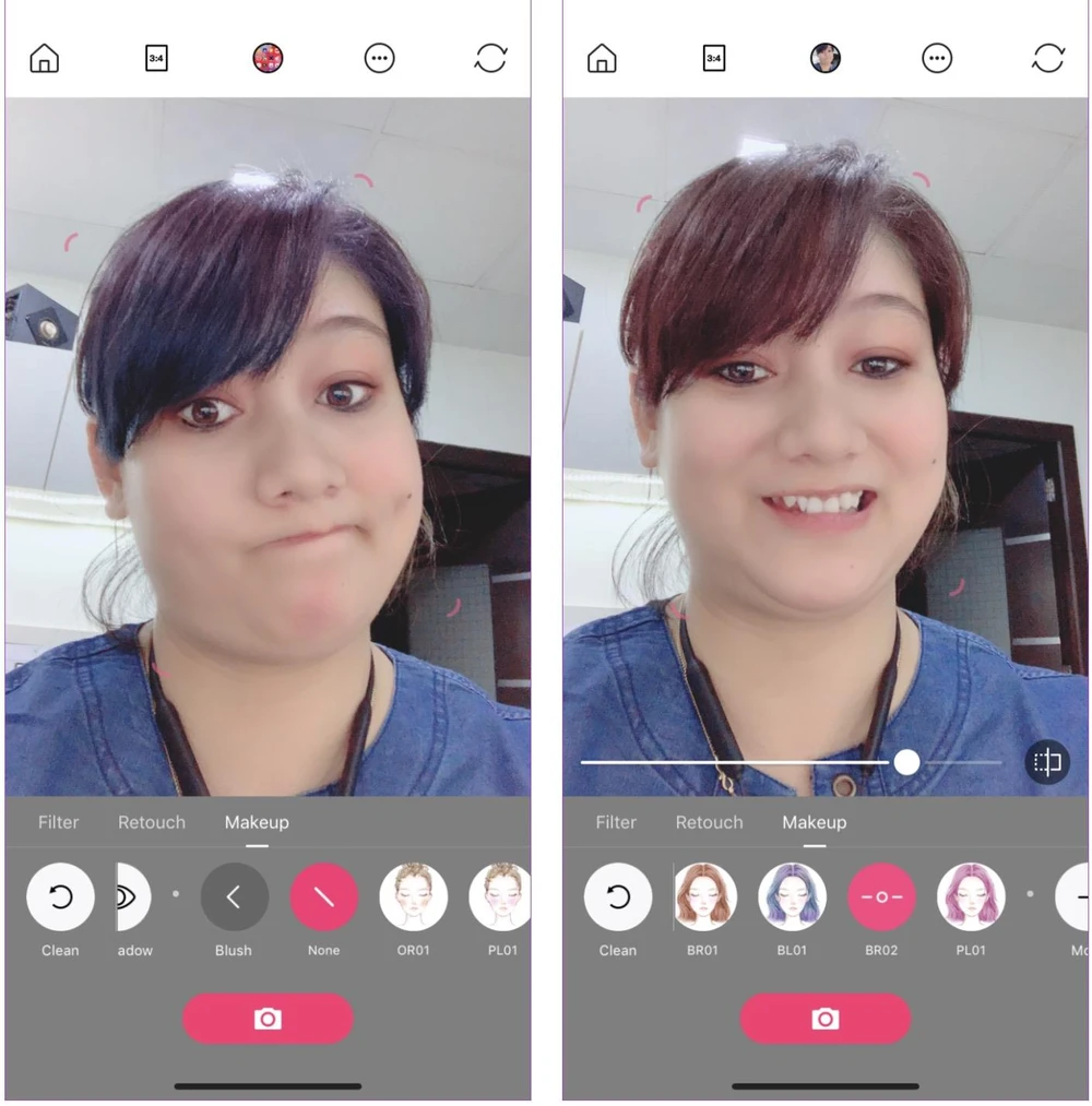 Beauty Plus đi kèm với các công cụ trang điểm và điều chỉnh thông thường như màu môi, màu mắt,… Bạn thậm chí còn có thể thử màu tóc khác nhau.