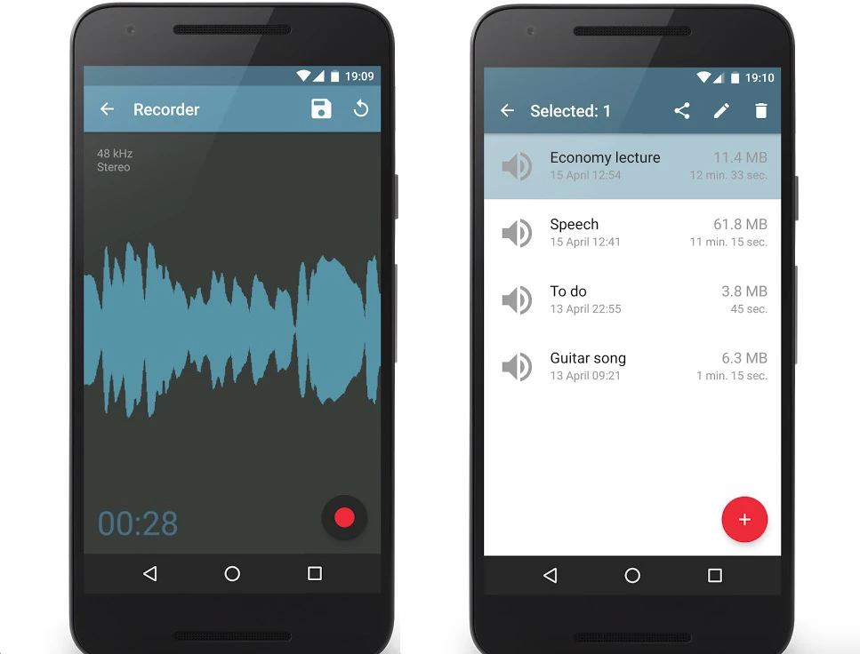 Dictaphone cho phép bạn ghi âm nhanh, sắp xếp và quản lý tập tin dễ dàng. Ứng dụng có khả năng tự động phát hiện và loại bỏ các khoảng lặng nhằm làm giảm dung lượng tập tin. Bên cạnh đó, Dictaphone còn có chức năng đồng bộ lên các dịch vụ đám mây như Google Drive, Dropbox… Bạn đọc quan tâm tải Dictaphone tại địa chỉ https://goo.gl/Xl37t5.