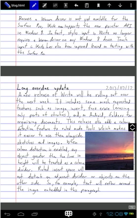 Bạn có thích đọc văn bản viết tay bằng font chữ trên máy tính? Nếu có, thì ứng dụng Write là lựa chọn thích hợp cho bạn. Đây là một ứng dụng Android, cho phép bạn tạo ra các ghi chú ở chế độ chữ viết tay và lưu giữ lại hoàn toàn phong cách này. Và khi mở nó trên máy tính, bạn có thể thêm vào văn bản theo dạng chữ viết tay hoặc thông thường. Thậm chí là thêm vào các hình vẽ tùy theo ý thích cá nhân.