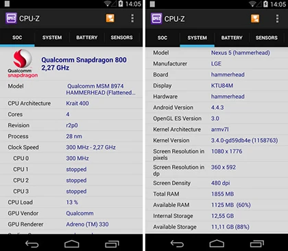 CPU-Z là một phần mềm khá phổ biến trên Windows và Android. Cung cấp cho bạn các thông tin về CPU, nhiệt độ từng nhân, tốc độ quạt và điện áp. Giúp bạn tìm được những thông tin về phiên bản kernel chỉ với một cú nhấp chuột. Tải về CPU-Z miễn phí từ Google Play http://goo.gl/dYMXt.