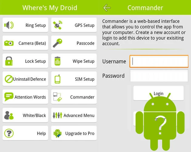 Where's My Droid cung cấp khá nhiều tính năng hữu ích. Ảnh: Internet
