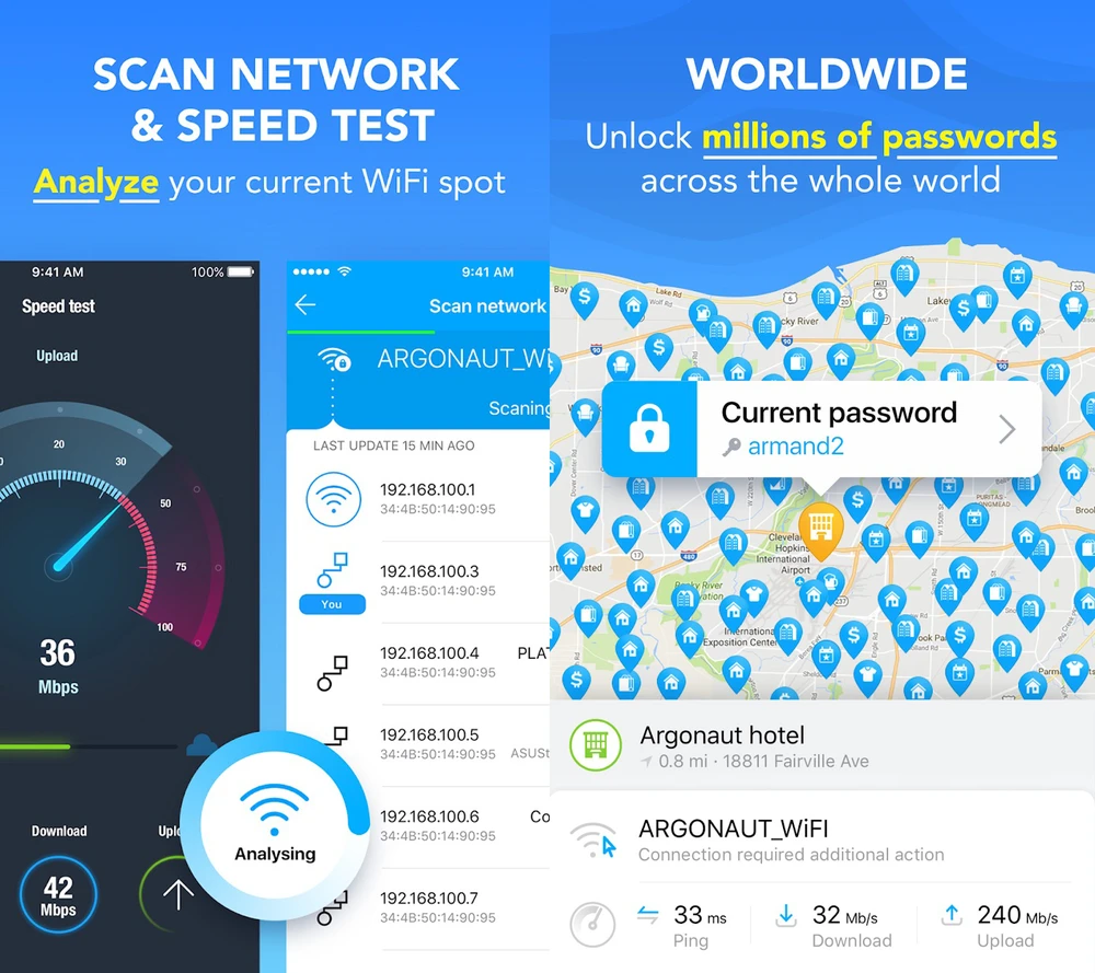 Nhà phát triển cho biết ứng dụng có mạng lưới khoảng 100 triệu người dùng với hơn 120 triệu điểm truy cập WiFi miễn phí. Phần bản đồ sẽ hiển thị các điểm kết nối tương ứng với khoảng cách tính từ vị trí của bạn.