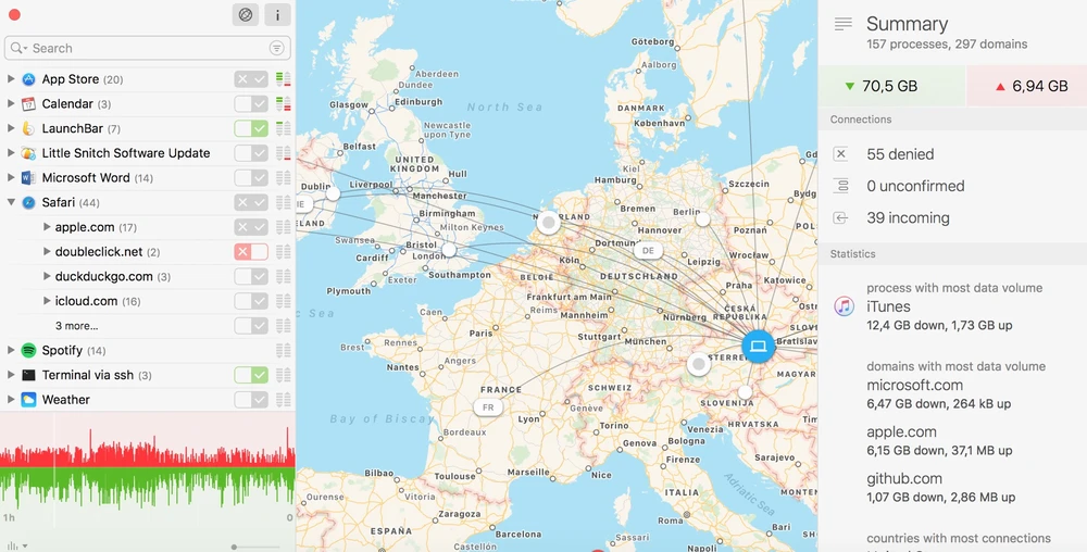Nếu đang sử dụng Windows, bạn hãy cài đặt phần mềm NetLimiter (http://www.netlimiter.com/) hoặc Little Snitch (https://goo.gl/cEwt) cho macOS. Về cơ bản, cả hai phần mềm sẽ liệt kê toàn bộ kết nối trên máy tính, cho phép người dùng ngăn chặn hoặc giới hạn sử dụng dữ liệu, truy cập Internet… chỉ với vài thao tác đơn giản.