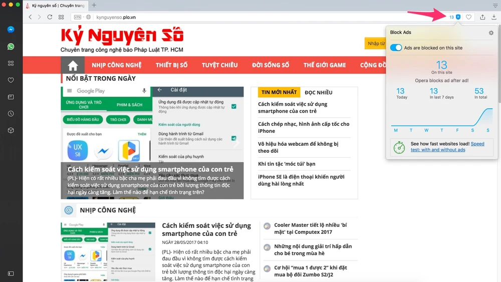 Opera sử dụng mã nguồn mở Chromium tương tự như trình duyệt Google Chrome, cho tốc độ tải trang nhanh, khả năng bảo mật tốt, tích hợp sẵn máy chủ VPN miễn phí, tiết kiệm pin… Ngoài ra, khi truy cập vào YouTube, bạn có thể mở video dưới dạng cửa sổ riêng biệt để rảnh tay làm thêm việc khác. Nếu muốn kích hoạt tính năng chặn quảng cáo, người dùng chỉ cần nhấp vào biểu tượng dấu “x” ở cuối thanh địa chỉ và chọn Ads are blocked on this site.