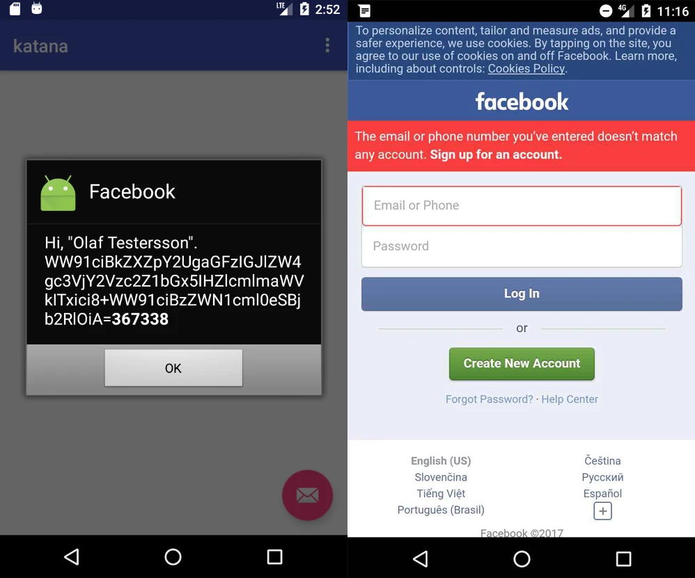 Cụ thể, khi bạn mở ứng dụng Facebook, phần mềm độc hại ngay lập tức sẽ nhắc nhở người dùng cần xác minh tài khoản bằng cách đăng nhập lại Facebook. Thay vì khai thác các lỗ hổng của hệ thống hoặc ứng dụng, GhostTeam sẽ tạo ra các trang web giả mạo giao diện Facebook nhằm đánh cắp thông tin đăng nhập.