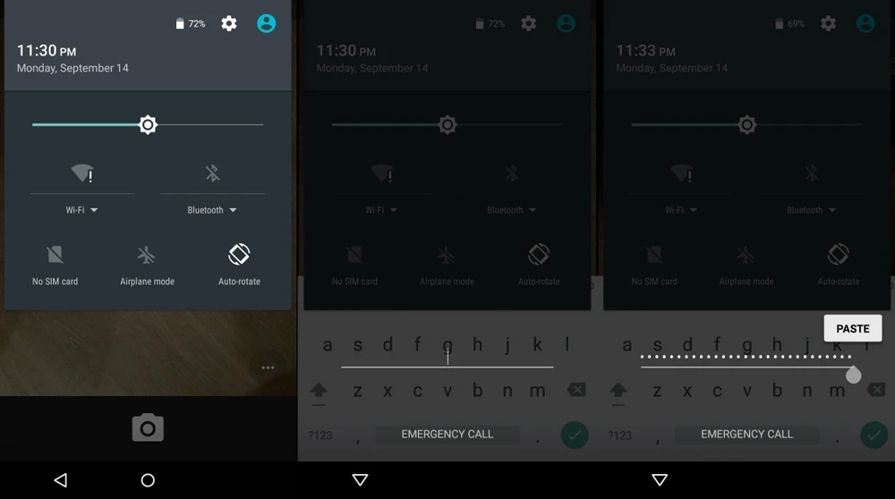 Sau đó, bạn lại dán tiếp các kí tự khi nãy vào đây cho đến khi smartphone bị quá tải và quay trở về màn hình camera, hãy chờ một lát và nó sẽ tự động đưa bạn vào thẳng giao diện chính. Cuối cùng, bạn chỉ cần vào lại Settings (cài đặt) và xóa bỏ tính năng Screen lock (khóa màn hình) trên Android.
