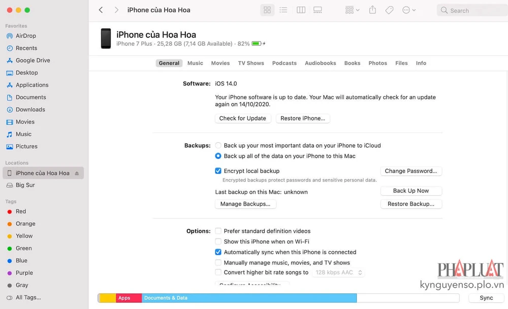 Sao lưu mọi dữ liệu trên iPhone bằng iTunes để hạn chế rủi ro. Ảnh: MINH HOÀNG