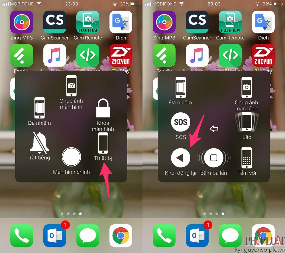 Nếu đã kích hoạt nút Home ảo (AssistiveTouch), bạn chỉ cần chọn Device (thiết bị) > More (thêm) > Restart (khởi động lại).