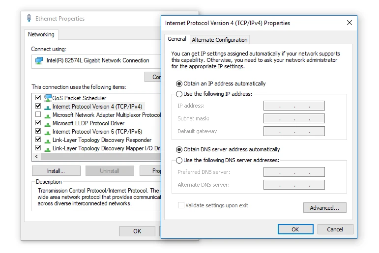 Nhấp đôi chuột lên mục Internet Protocol Version 4 (TCP/IPv4). Chọn Obtain an IP address automatically và Obtain DNS server address automatically. Nhấn OK > OK và đóng tất cả cửa sổ. Khởi động lại máy tính để áp dụng các thay đổi.