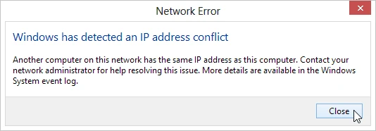 Thông báo này chỉ xuất hiện khi địa chỉ IP của bạn trùng với một thiết bị nào đó trong mạng.