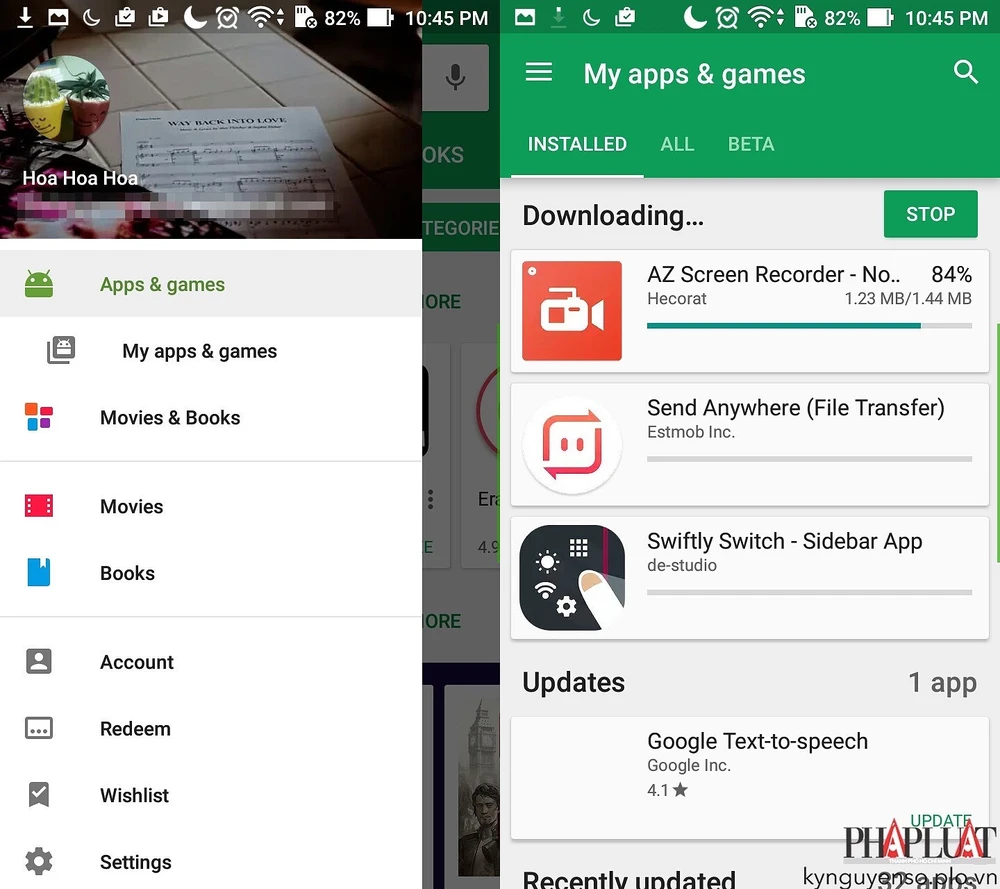 Đồng thời cập nhật tất cả ứng dụng lên phiên bản mới nhất thông qua Google Play.