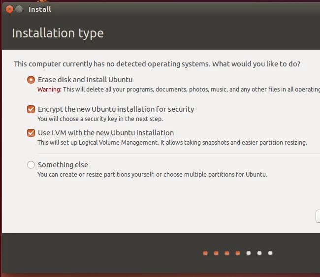 Linux cũng có tính năng mã hóa dù không phải mặc định. Khi cài đặt, bạn sẽ thấy một hộp kiểm (checkbox) đề nghị kích hoạt mã hóa.