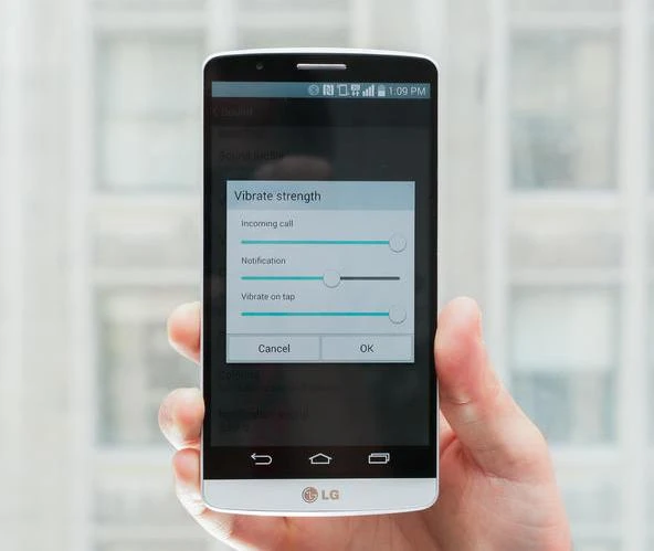 Bạn thấy điện thoại LG G3 rung quá mạnh hay quá yếu? Bạn có thể chỉnh để điện thoại rung theo cường độ mạnh, yếu khác nhau khi có cuộc gọi đến, thông báo mới… Hãy vào Settings, chọn “Sound” trong menu “Device”, nhấn vào “Vibrate strength”.