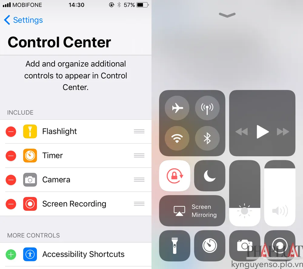 - Control Center: Kể từ bản cập nhật iOS 11, Apple đã “thay máu” toàn bộ Control Center (trung tâm điều khiển), cho phép bạn bổ sung thêm các tiện ích hoặc phím tắt thường dùng vào màn hình chính. Trên các dòng smartphone Android, tính năng này được gọi là Quick Actions.
