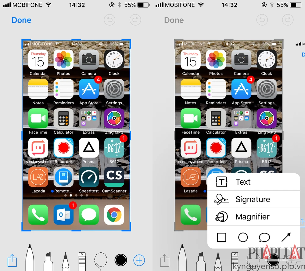 - Screenshot: Khi chụp ảnh màn hình trên iOS 11, bạn sẽ thấy xuất hiện thêm một hình ảnh thu nhỏ ở góc trái bên dưới màn hình, cho phép người dùng chỉnh sửa bằng các công cụ nâng cao. Về cơ bản, tính năng này vốn đã xuất hiện từ rất lâu trên các thiết bị của Samsung và Xiaomi.