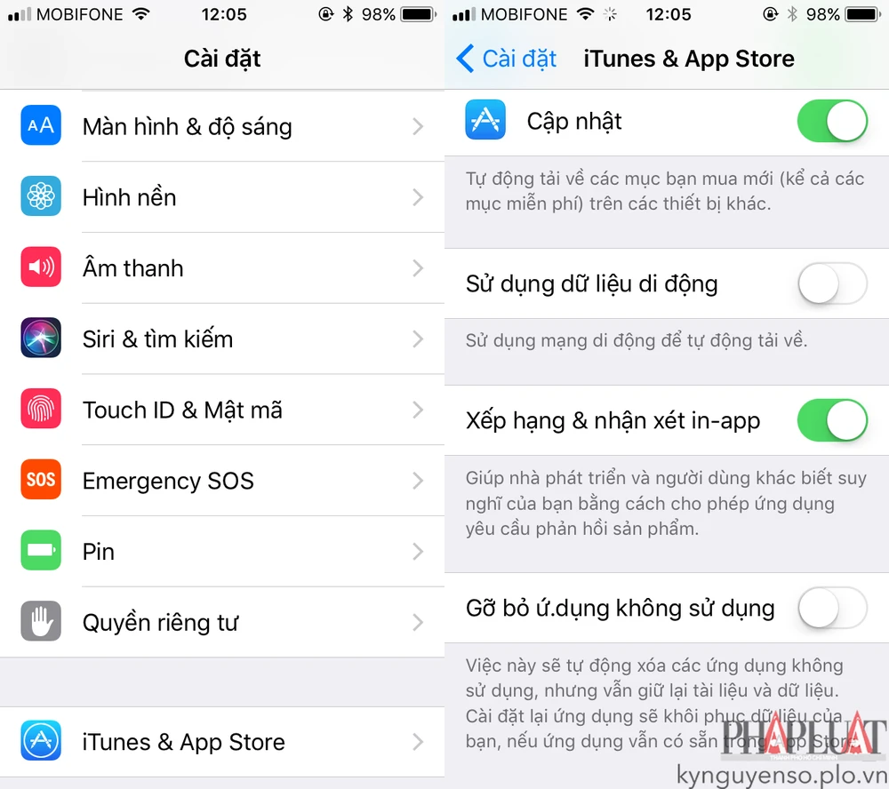 - Offload Apps: Trên iOS 11, người dùng có thể xóa ứng dụng nhưng vẫn giữ lại dữ liệu bằng cách vào Settings (cài đặt) > iTunes & App Store và kích hoạt tùy chọn Offload Unused Apps (gỡ bỏ ứng dụng không sử dụng). Về cơ bản, tính năng này đã có từ rất lâu trên Android trong phần Settings (cài đặt) > Apps (ứng dụng) > Clear Cache (xóa cache) hoặc Clear Data (xóa dữ liệu).