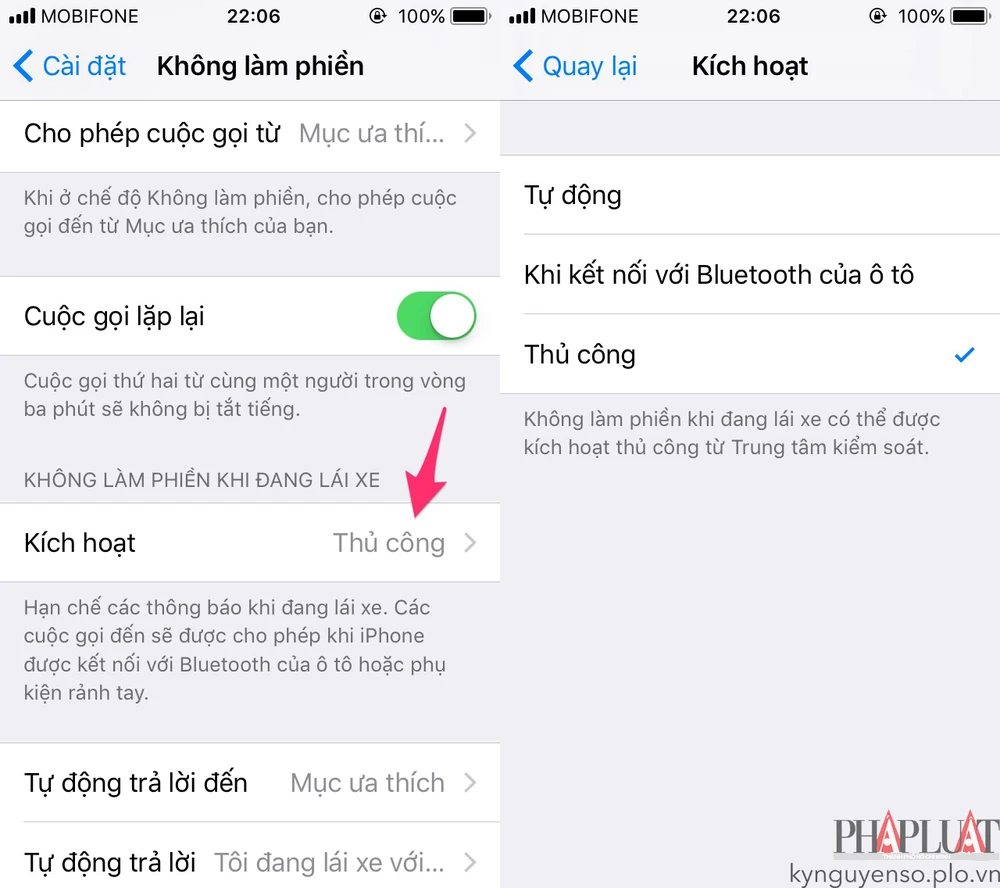 - Do Not Disturb While Driving (không làm phiền khi đang lái xe) - Đây là một tính năng khá hữu ích đối với những ai thường xuyên đi du lịch hoặc phải lái xe đường dài. Bạn có thể kích hoạt tùy chọn này trong phần Settings (cài đặt) > Do Not Disturb (không làm phiền).