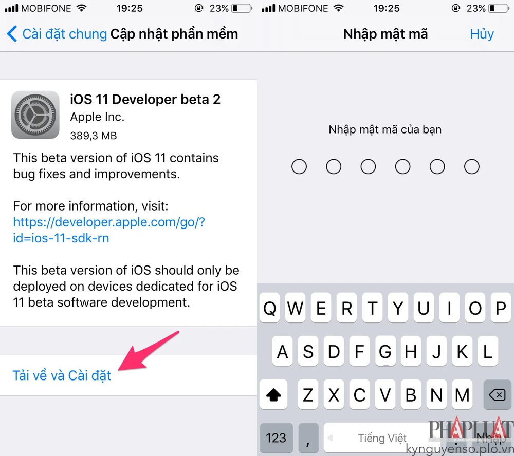 Tiếp theo, người dùng cần sao lưu lại toàn bộ thiết bị thông qua iTunes hoặc iCloud, sau đó truy cập vào Settings (cài đặt) > General (cài đặt chung) > Software Update (cập nhật phần mềm) và tải về iOS 11 Beta 2 (dung lượng 389 MB). Lưu ý, con số này có thể thay đổi tùy vào thiết bị bạn đang sử dụng.