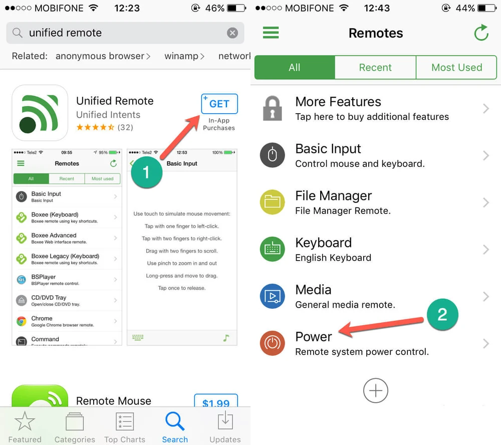 Khi cả hai thiết bị đã nhận diện được nhau, màn hình điện thoại sẽ xuất hiện một loạt tùy chọn gồm Basic Input (biến smartphone thành bàn phím và chuột cho máy tính), File Manager (truy cập file từ xa trên máy tính), Keyboard, Media (mở nhanh các tập tin nhạc, video từ xa) và cuối cùng là Power (tắt máy từ xa). Ngoài ra vẫn còn rất nhiều tùy chọn khác mà bạn có thể khám phá thêm trong quá trình sử dụng.