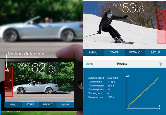 Khi cài đặt ứng dụng Speed Gun (https://goo.gl/3shJkR) hoặc SpeedClock (https://goo.gl/hjb51L), bạn có thể sử dụng smartphone để đo tốc độ, khoảng cách của vật thể hoặc đối tượng đang di chuyển. Phù hợp khi tham dự các sự kiện thể thao như bóng đá, bóng chày, đua xe…