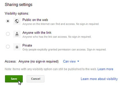Đầu tiên, bạn cần đăng nhập vào Google Drive rồi bấm Upload. Chọn video muốn chia sẻ và bấm Share để thay đổi quyền truy cập từ Private sang Public (trong mục Who has access).