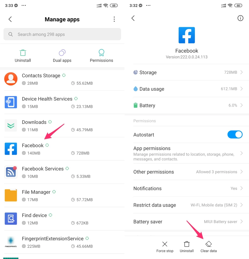 Đầu tiên, bạn hãy truy cập vào phần Settings (cài đặt) trên điện thoại, sau đó chọn Apps (ứng dụng) > Facebook. Tiếp theo, người dùng chỉ cần nhấp vào tùy chọn Clear cache (xóa cache) và Clear data (xóa dữ liệu). Lưu ý, tên và vị trí các tùy chọn có thể thay đổi tùy vào thiết bị bạn đang sử dụng.