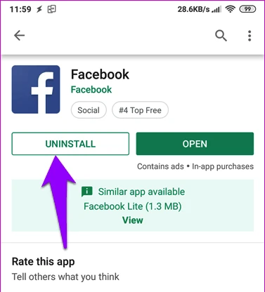 Đầu tiên, bạn hãy truy cập vào Google Play, bấm vào tùy chọn Uninstall để gỡ bỏ Facebook. Sau đó tiến hành cài đặt lại ứng dụng, đăng nhập tài khoản và kiểm tra lại News Feed (bảng tin). Bên cạnh đó, nếu Facebook có bản cập nhật mới, người dùng cũng nên cài đặt ngay lập tức để cải thiện độ ổn định và vá những lỗ hổng còn tồn đọng trước đó.