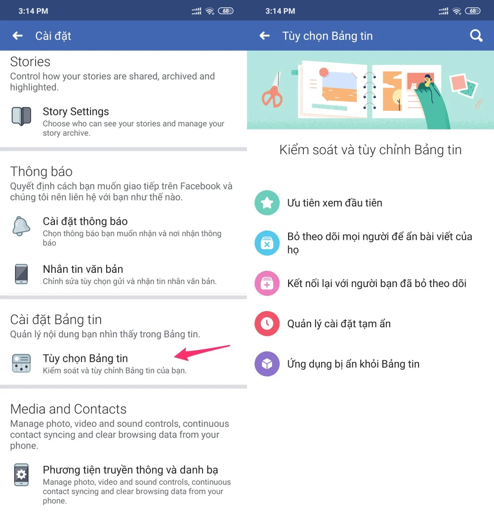 Tại đây, bạn có thể thiết lập chính xác những điều cần thấy và không muốn thấy từ bạn bè hoặc từ một trang bất kỳ. Khi hoàn tất, người dùng chỉ cần tắt Facebook và mở lại để ứng dụng tải dữ liệu mới.