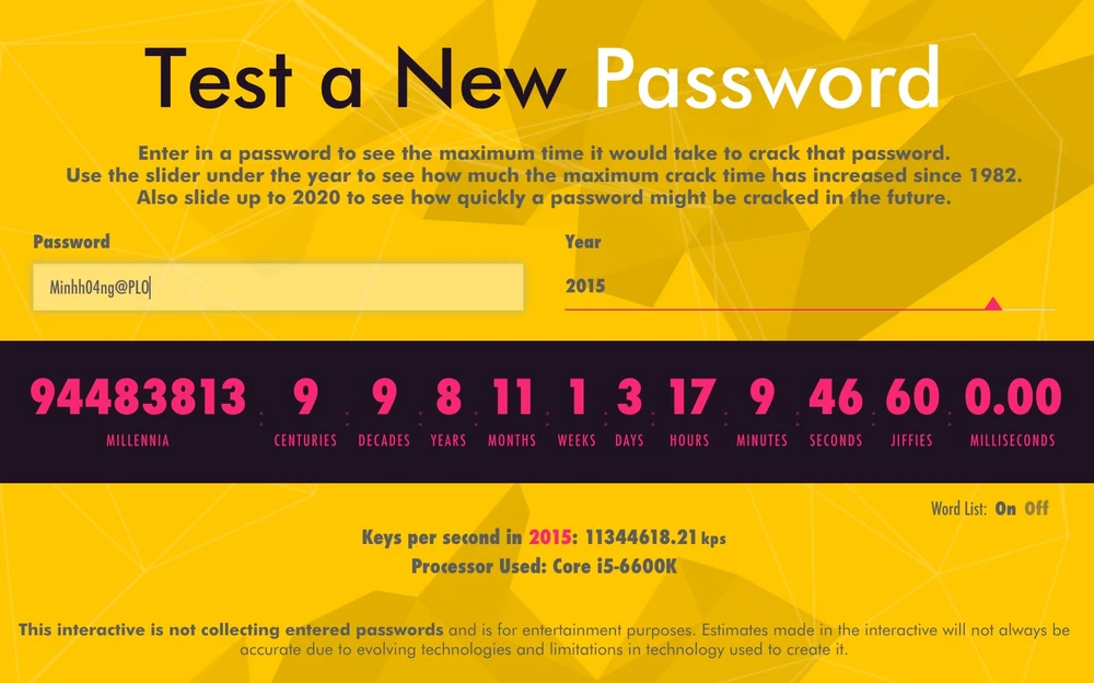 Nhiều người thường có thói quen đặt mật khẩu bằng tên thú cưng, ngày sinh, số điện thoại… để dễ nhớ, tuy nhiên, việc này không hề an toàn bởi tin tặc có thể dò ra mật khẩu bằng phương pháp Bruce force.