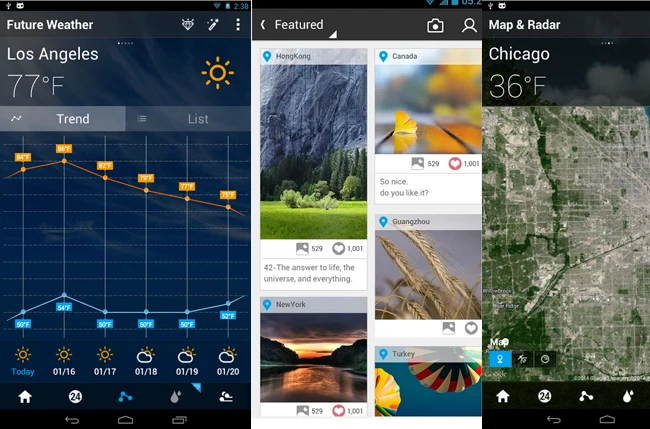 Go Weather không nổi tiếng nhờ thông tin cực kỳ chính xác về thời tiết, nhưng nó cung cấp hơn 1.000 hình nền và hình động cho người dùng lựa chọn. Ngoài ra, nó còn cung cấp bản đồ vệ tinh tương tác về một số thành phố nổi tiếng trên thế giới, cùng với những tính năng xã hội độc đáo như chia sẻ ảnh về thời tiết và dự báo thời tiết tới bạn bè và người thân trong giao đình.
