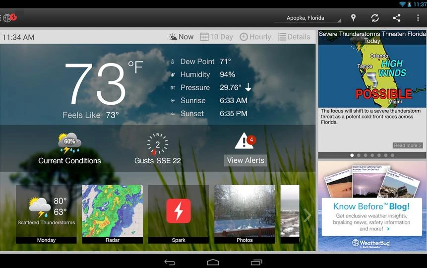 WeatherBug là ứng dụng thời tiết khá nổi tiếng. Ứng dụng hỗ trợ GPS để cung cấp thông tin thời tiết theo vị trí người dùng. WeatherBug dự báo thời tiết trong vòng 10 ngày, cung cấp thông tin về nhiệt độ, độ ẩm, áp suất và một vài số liệu đáng chú ý khác.