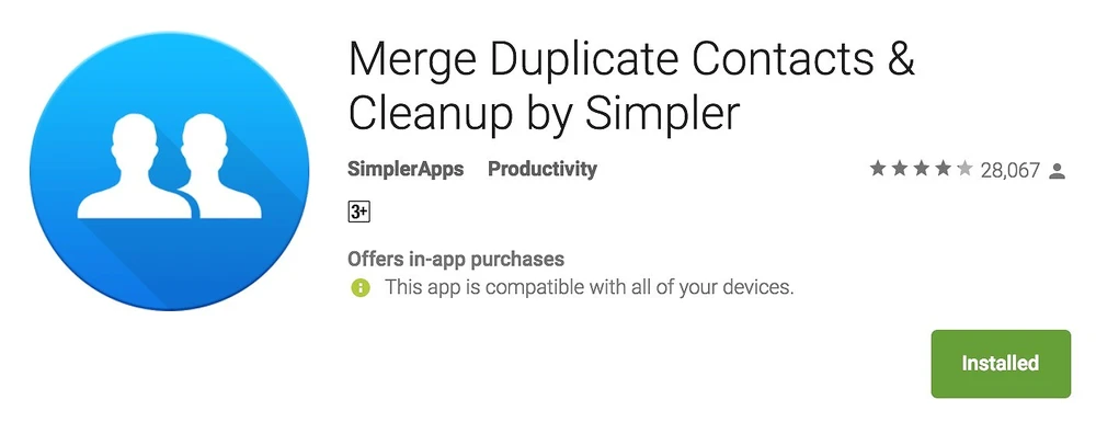 Merge Duplicate Contacts sẽ tự động kết hợp tất cả số điện thoại và thông tin bị trùng lặp lại thành một. Ngoài ra, nó còn cung cấp thêm một số tính năng khác như hủy bỏ các địa chỉ liên lạc không có tên hoặc số điện thoại, sao lưu danh bạ chỉ với một cú chạm, dễ dàng tìm thấy các số cần liên lạc…
