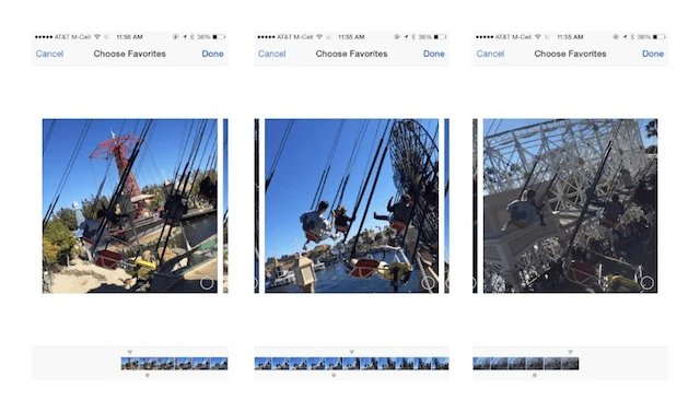Chế độ này chỉ được tích hợp từ iPhone 5S trở đi, cho phép người dùng ghi lại toàn bộ khoảnh khắc chuyển động nhanh. Để bắt đầu, bạn chỉ cần nhấn và giữ im nút chụp. Lúc này, bạn sẽ thấy xuất hiện một thanh trượt nhỏ ở phía dưới màn hình, hiển thị số lượng các bức ảnh vừa chụp, khi hoàn tất bạn chỉ cần thả tay và ảnh sẽ tự động được lưu vào Camera Roll.