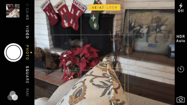 Nếu bạn muốn chụp ảnh macro (cận cảnh) hoặc lấy nét tại một điểm cố định thì nên sử dụng tính năng khóa nét có sẵn trên iPhone. Đầu tiên, bạn hãy nhấn và giữ im lên đối tượng cần lấy nét cho đến khi xuất hiện khung màu vàng có chữ AE/ AF Lock. Ngược lại, để bỏ khóa, người dùng chỉ cần chạm vào một vị trí khác trên khung ngắm.